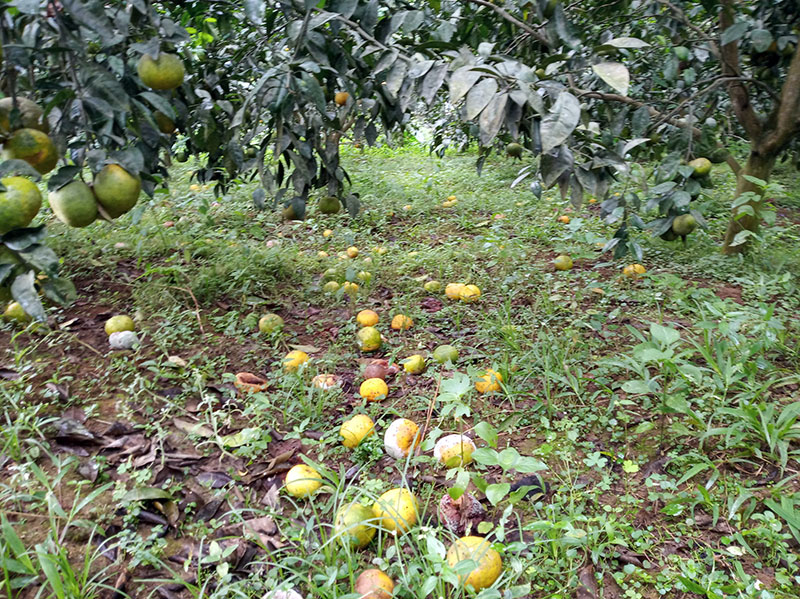 Vì giá bán thấp kỉ lục và không có đầu ra, nhiều hộ gia đình trồng quýt nơi đây chấp nhận để quả chín rồi rụng.