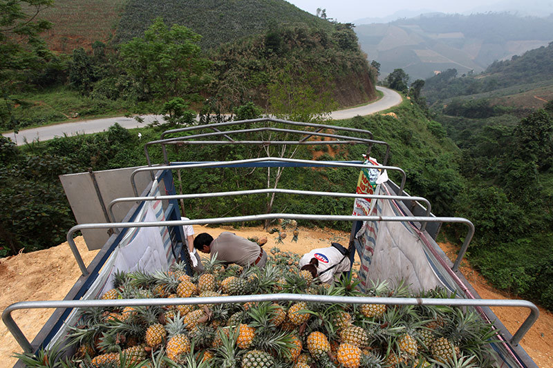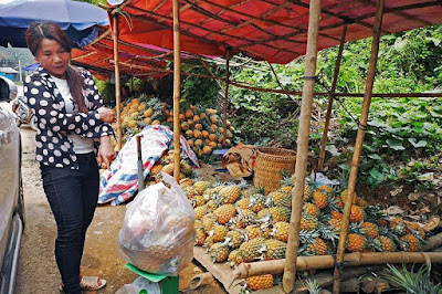 Cũng như những người dân trồng dứa ở Bản Lầu, chị Phạm Thị Thúy phải tự mang dứa ra quốc lộ bán với giá 3.000 đồng/kg.