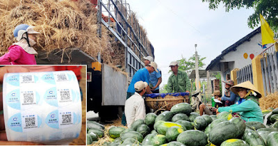 Qua tìm hiểu ban đầu, dịch ra thì tem này thông tin rất nghèo nàn, trong đó có nói là dưa hấu sản xuất ở Việt Nam, dạng như tem truy xuất nguồn gốc.