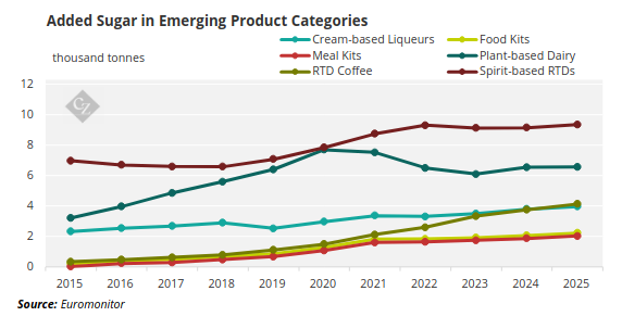 Dù xu hướng chung là giảm, một số phân khúc nhỏ vẫn ghi nhận tăng trưởng. Quy mô của các phân khúc này chưa đủ lớn để tác động đáng kể đến tổng mức tiêu thụ đường, nhưng tốc độ tăng nhanh khiến chúng đáng được theo dõi. Nhiều sản phẩm gắn với sự tiện lợi, cho thấy nhu cầu đối với vị ngọt vẫn tồn tại, dù người tiêu dùng ngày càng ý thức hơn về sức khỏe.