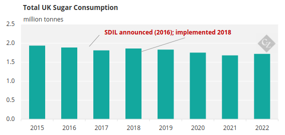 Vì vậy, hiệu quả tổng thể của SDIL vẫn còn gây tranh luận. Chính sách này đã giúp giảm hàm lượng đường trong đồ uống, góp phần hạ mức tiêu thụ đường và tăng nguồn thu cho ngân sách. Tuy nhiên, nó chưa cho thấy tác động rõ rệt trong việc giảm tỷ lệ béo phì ở cả người lớn và trẻ em – mục tiêu ban đầu của chính sách.